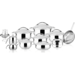 مجموعة متكاملة: طقم مكون من 23 قطعة من الستانلس ستيل عالي الجودة صناعة تركية فاخرة ، يشمل حلل وكسرولة ومقلاة وصواني وبراد شاي