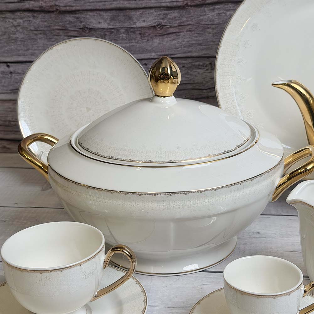 طقم سفرة متكامل وفاخر بتصميم أنيق، مثالي للعزائم والمناسبات الخاصة. مصنوع من خامات عالية الجودة لضمان الاستخدام اليومي والمظهر الراقي.