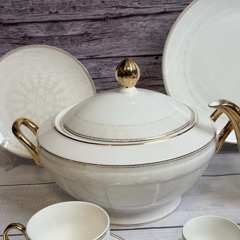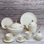 طقم سفرة متكامل وفاخر بتصميم أنيق، مثالي للعزائم والمناسبات الخاصة. مصنوع من خامات عالية الجودة لضمان الاستخدام اليومي والمظهر الراقي.