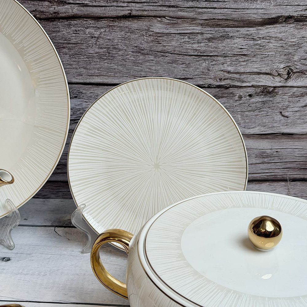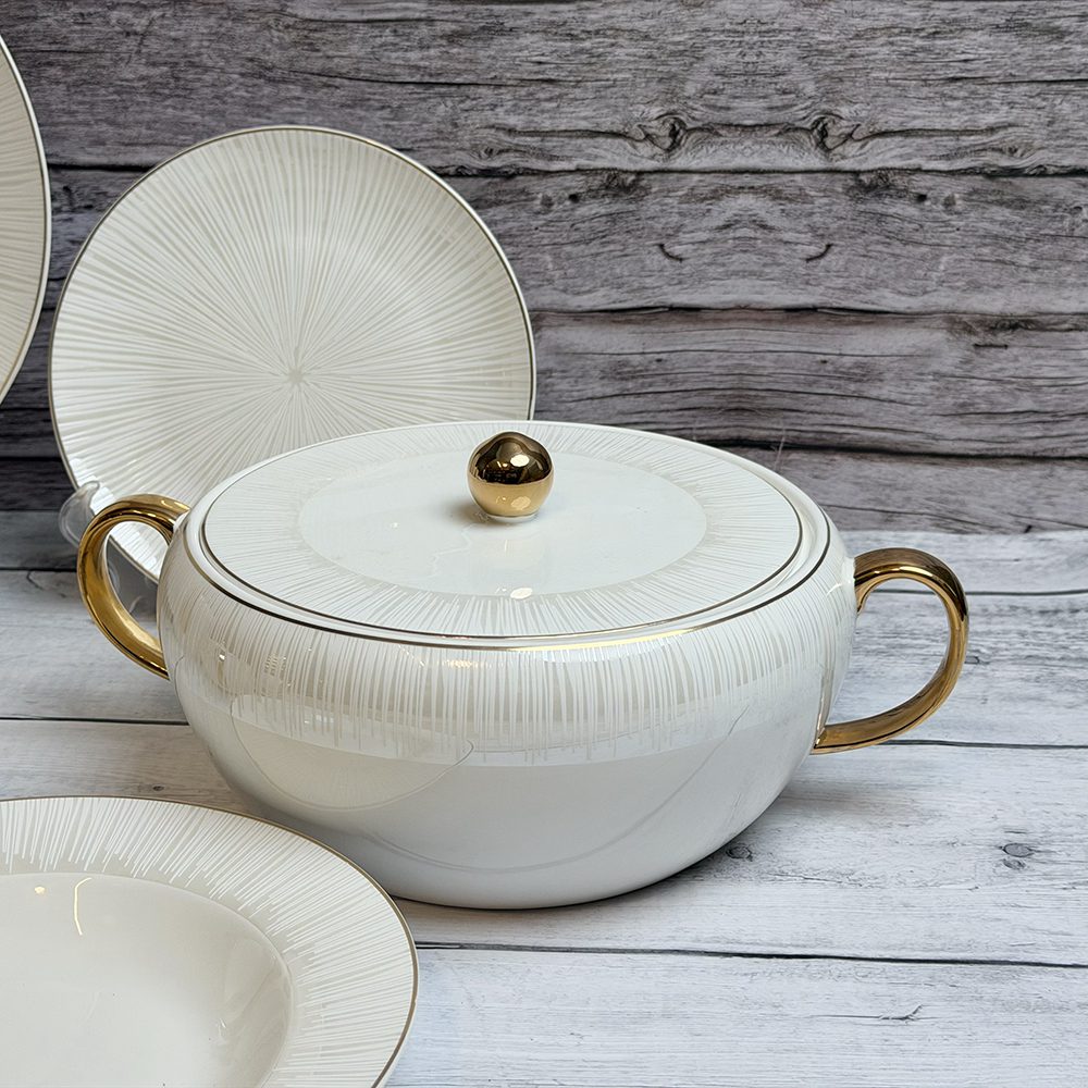 طقم سفرة متكامل وفاخر بتصميم أنيق، مثالي للعزائم والمناسبات الخاصة. مصنوع من خامات عالية الجودة لضمان الاستخدام اليومي والمظهر الراقي.