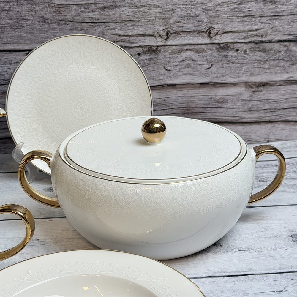 طقم سفرة متكامل وفاخر بتصميم أنيق، مثالي للعزائم والمناسبات الخاصة. مصنوع من خامات عالية الجودة لضمان الاستخدام اليومي والمظهر الراقي.
