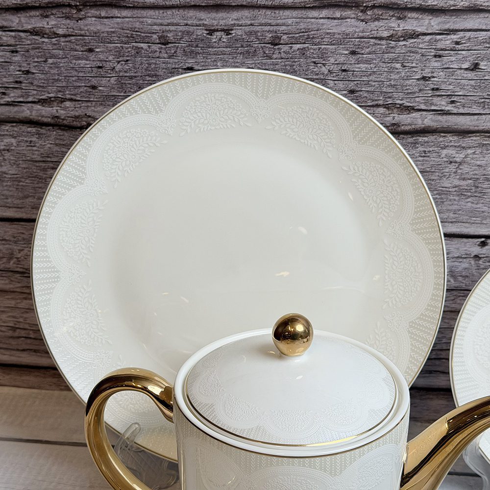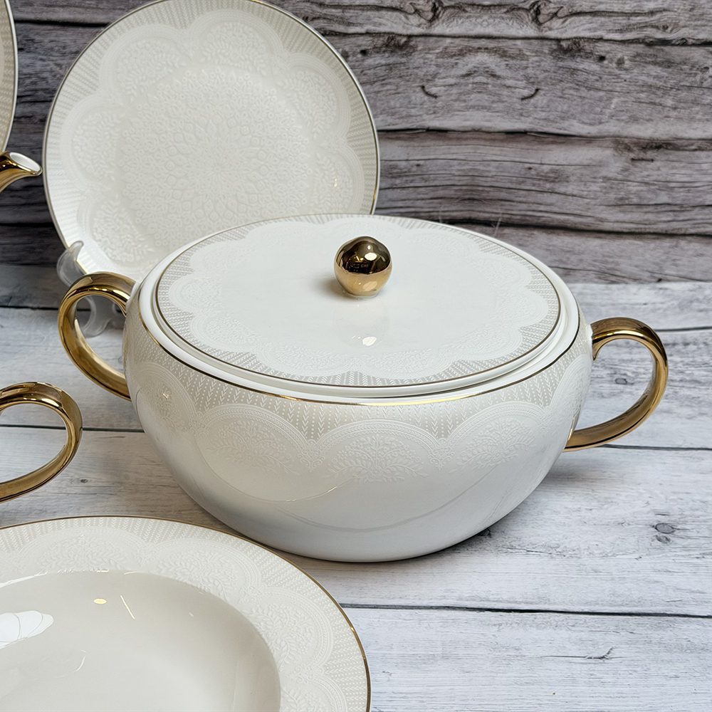 طقم سفرة متكامل وفاخر بتصميم أنيق، مثالي للعزائم والمناسبات الخاصة. مصنوع من خامات عالية الجودة لضمان الاستخدام اليومي والمظهر الراقي.