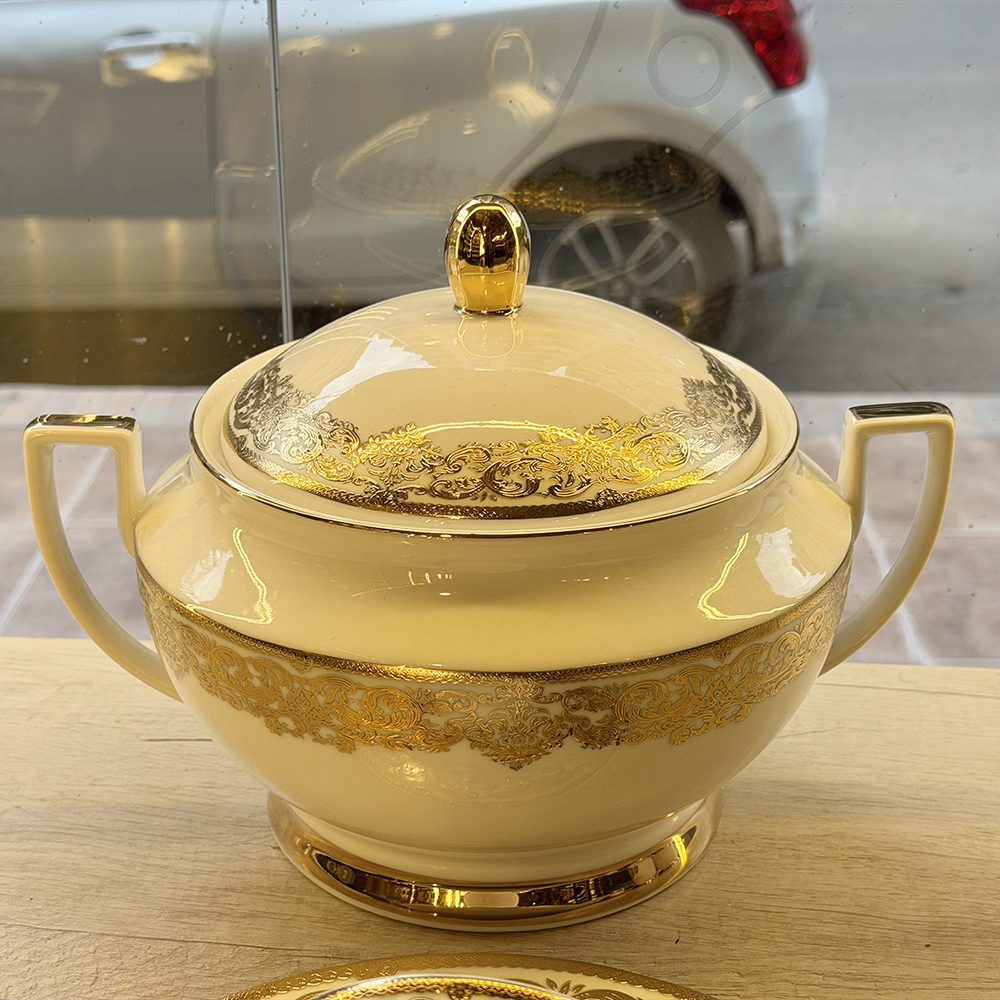 الخامة قوية وتتحمل الاستخدام المتكرر، ومناسبة للتقديم اليومي وكمان للمناسبات والضيوف، مع تصميم شيك يضيف لمسة فخامة على السفرة.