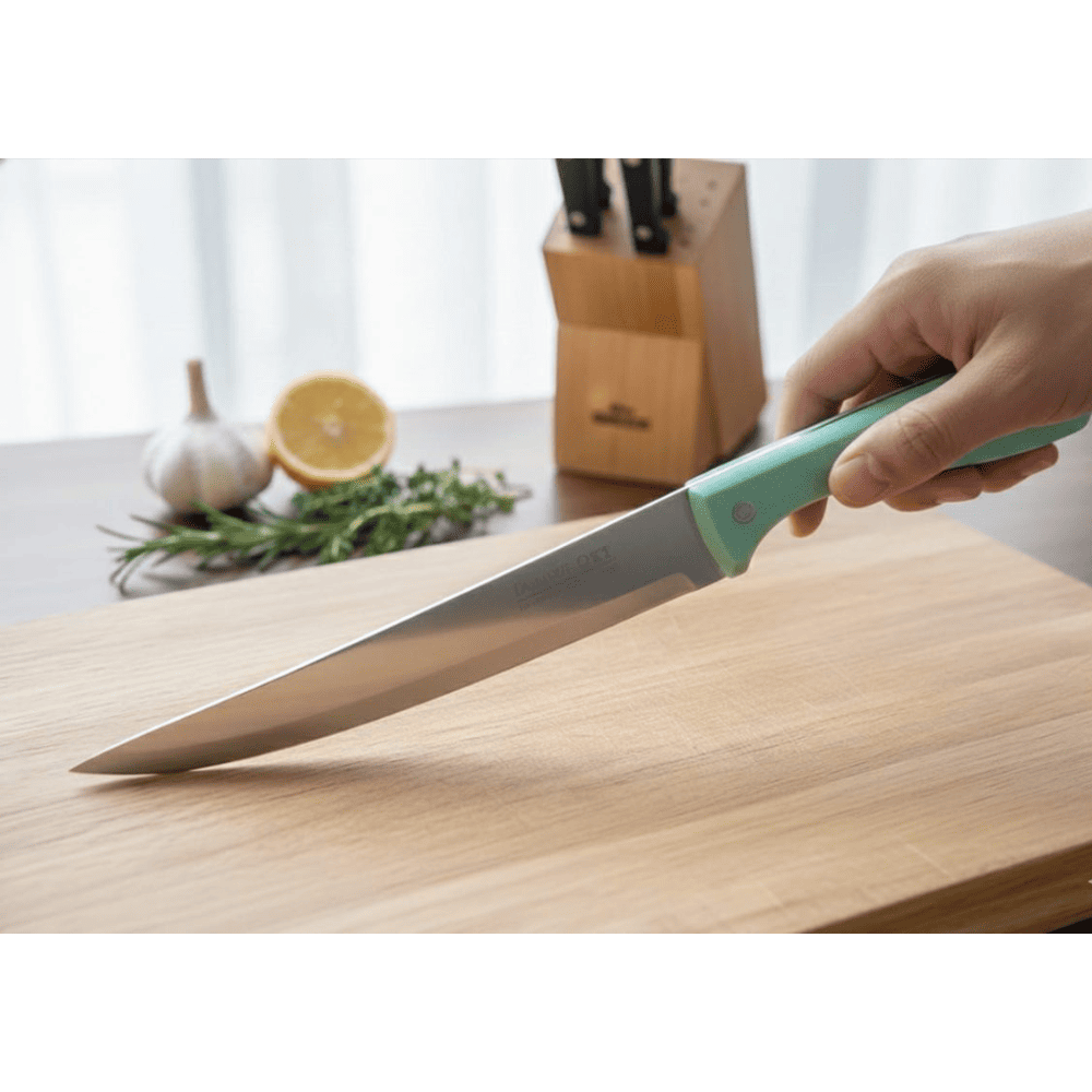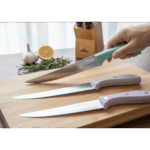 الاستخدام: الطقم مناسبًا لمهام المطبخ المختلفة مثل تقطيع اللحوم، الفيليه، أو شرائح الخضار الطويلة، مما يجعله إضافة عملية وعصرية لمجموعة أدوات المطبخ