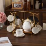 استمتع بتجربة تقديم راقية مع طقم الشاي السيراميك الفاخر المصمم بعناية ليجمع بين الأناقة والعملية. يتميز الطقم بتصميم عصري مع حامل معدني متين يوفر تنظيمًا مثاليًا وسهولة في العرض والتخزين، مما يجعله إضافة مميزة لأي مطبخ أو طاولة ضيافة.