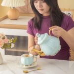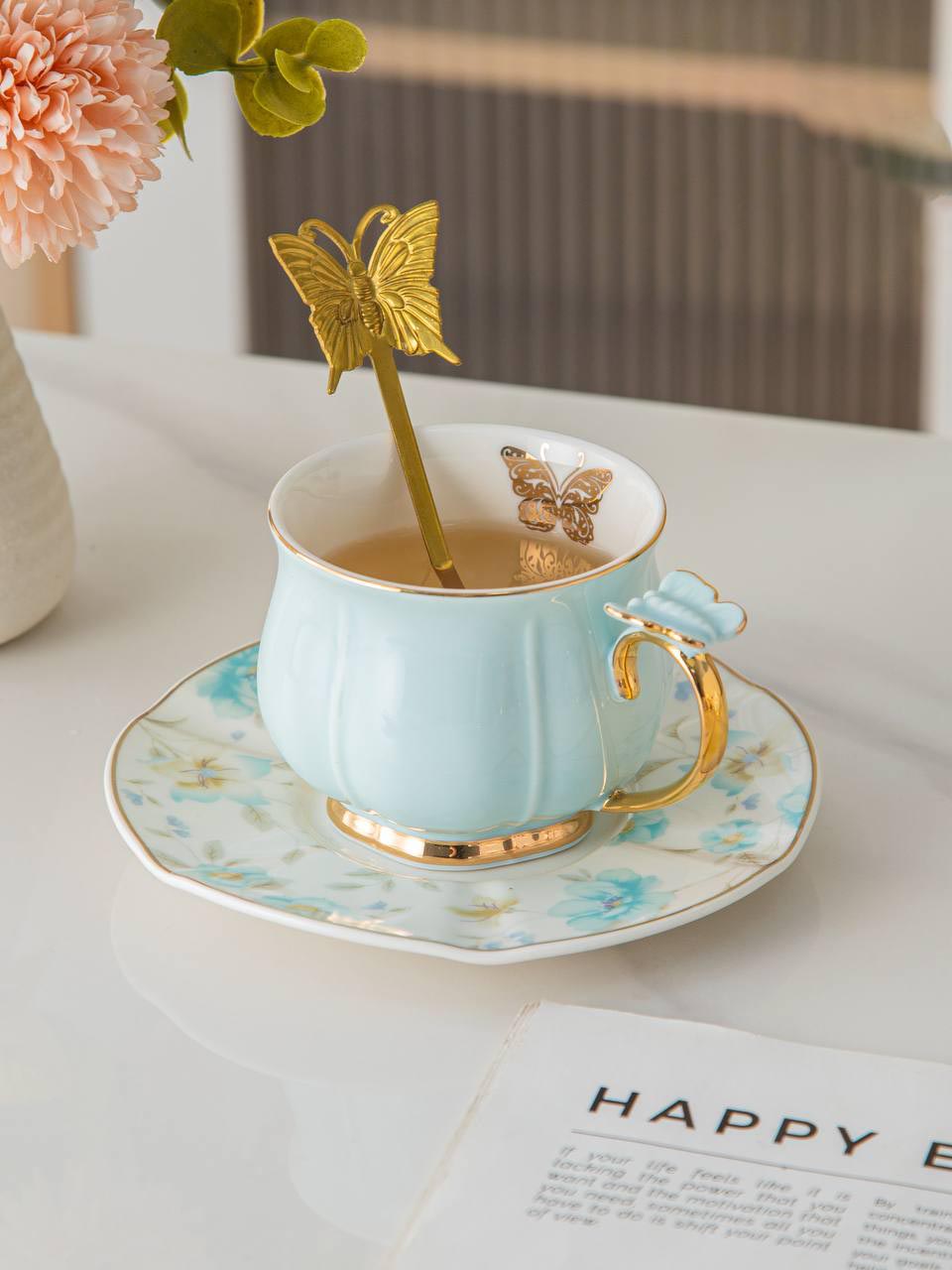 تميّزي بتقديم أنيق وفاخر مع طقم الشاي FLOWRY Butterfly باللون الأزرق الفاتح، المصنوع من بورسلين عالي الجودة مع تصميم مستوحى من شكل الفراشة، لتجربة تقديم تجمع بين الجمال والعملية.