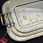 طقم صواني ايطالى 3 قطع – Rect. Flowers Gold – FLOG-600-2-3-4