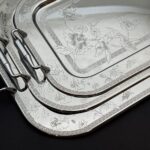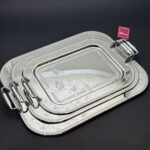 طقم صواني ايطالى 3 قطع – Rect. Flowers Silver – FLOS-600-2-3-4