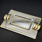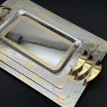 طقم فاخر بتصميم مستطيل مطلي باللون الذهبي ونقشة بايزلي الأنيقة – خيار مثالي للضيافة الراقية أو كقطعة ديكور مميزة في منزلك.