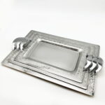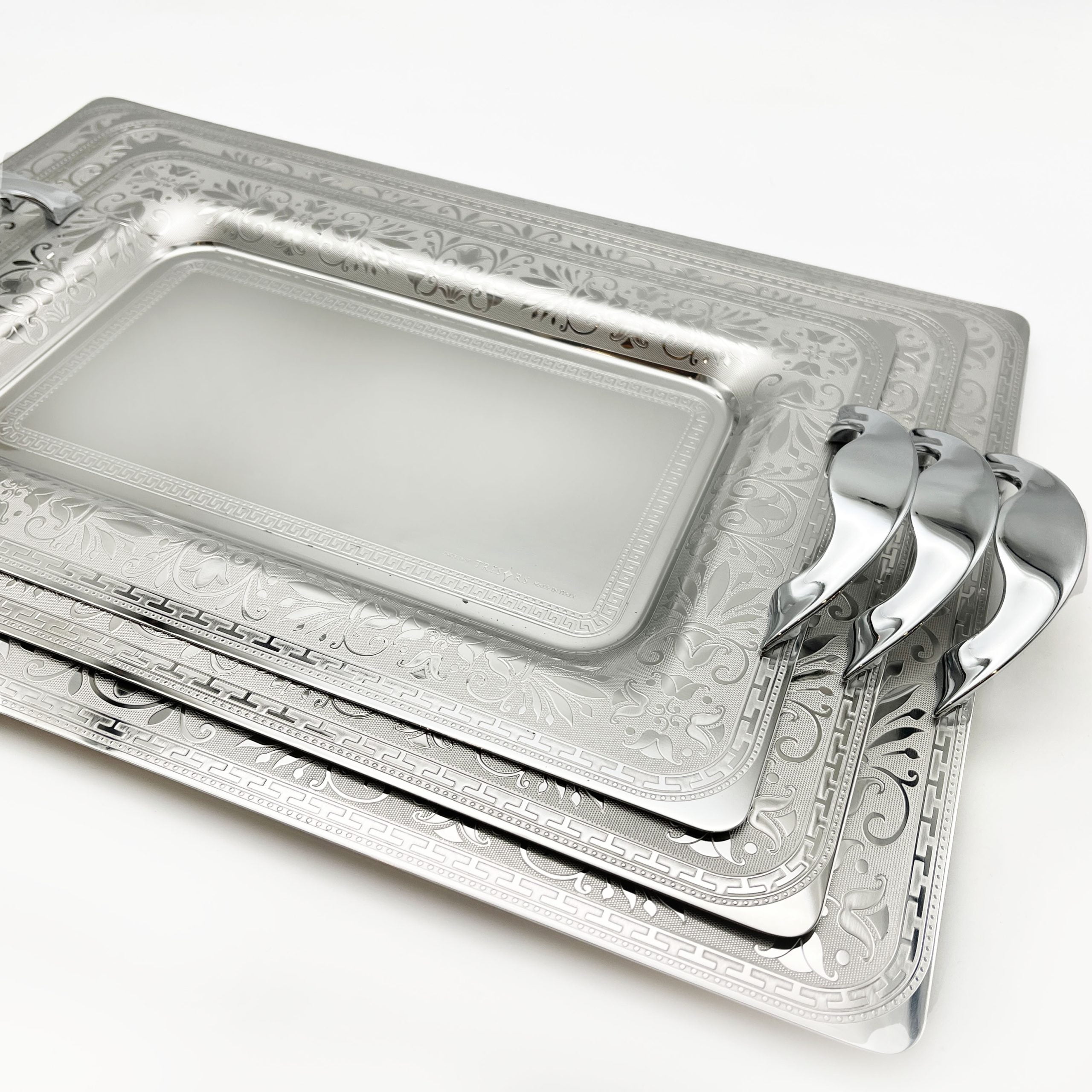 طقم صواني ايطالي 3 قطع مستطيل فضي – Tressors