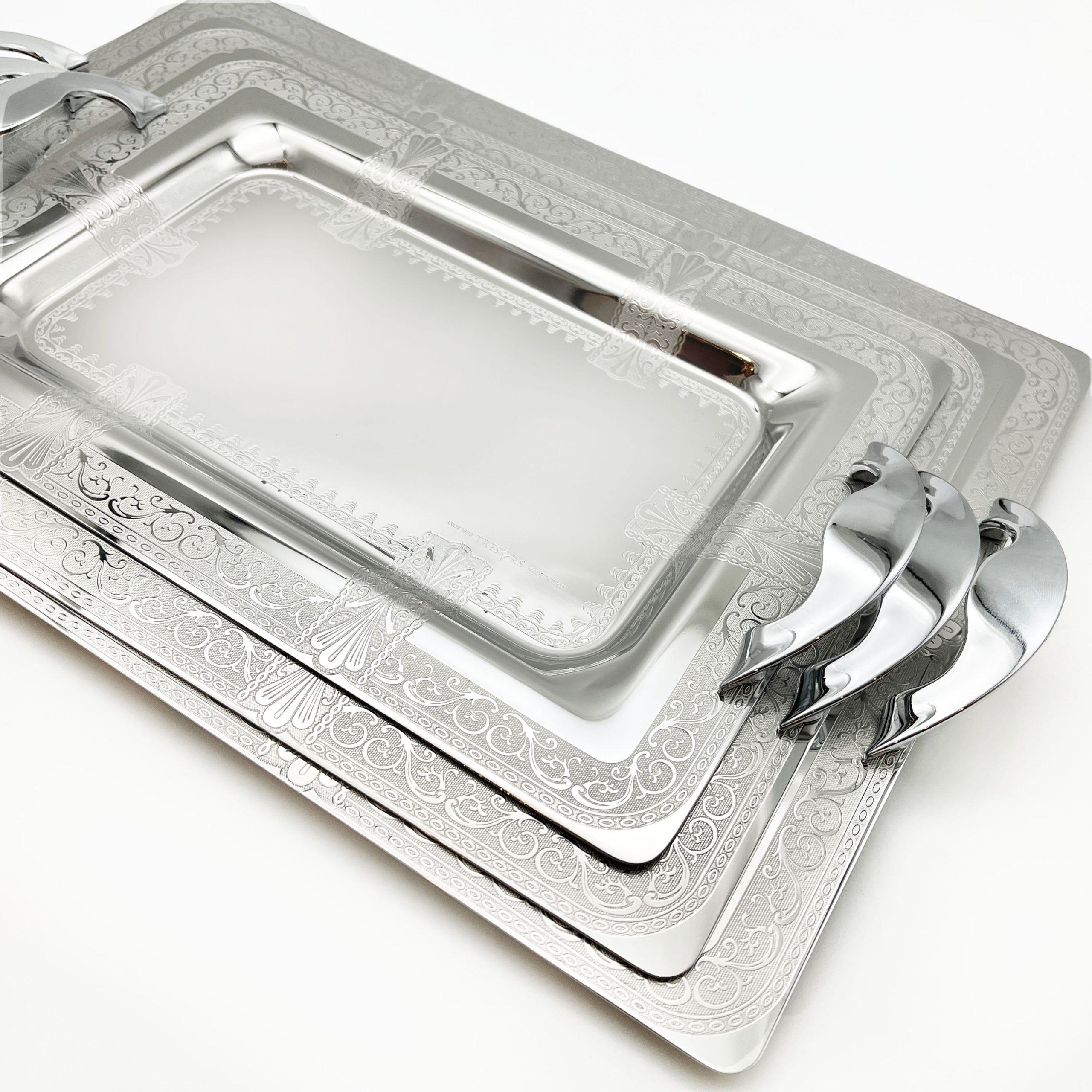 طقم صواني ايطالي 3 قطع مستطيل فضي – Tressors