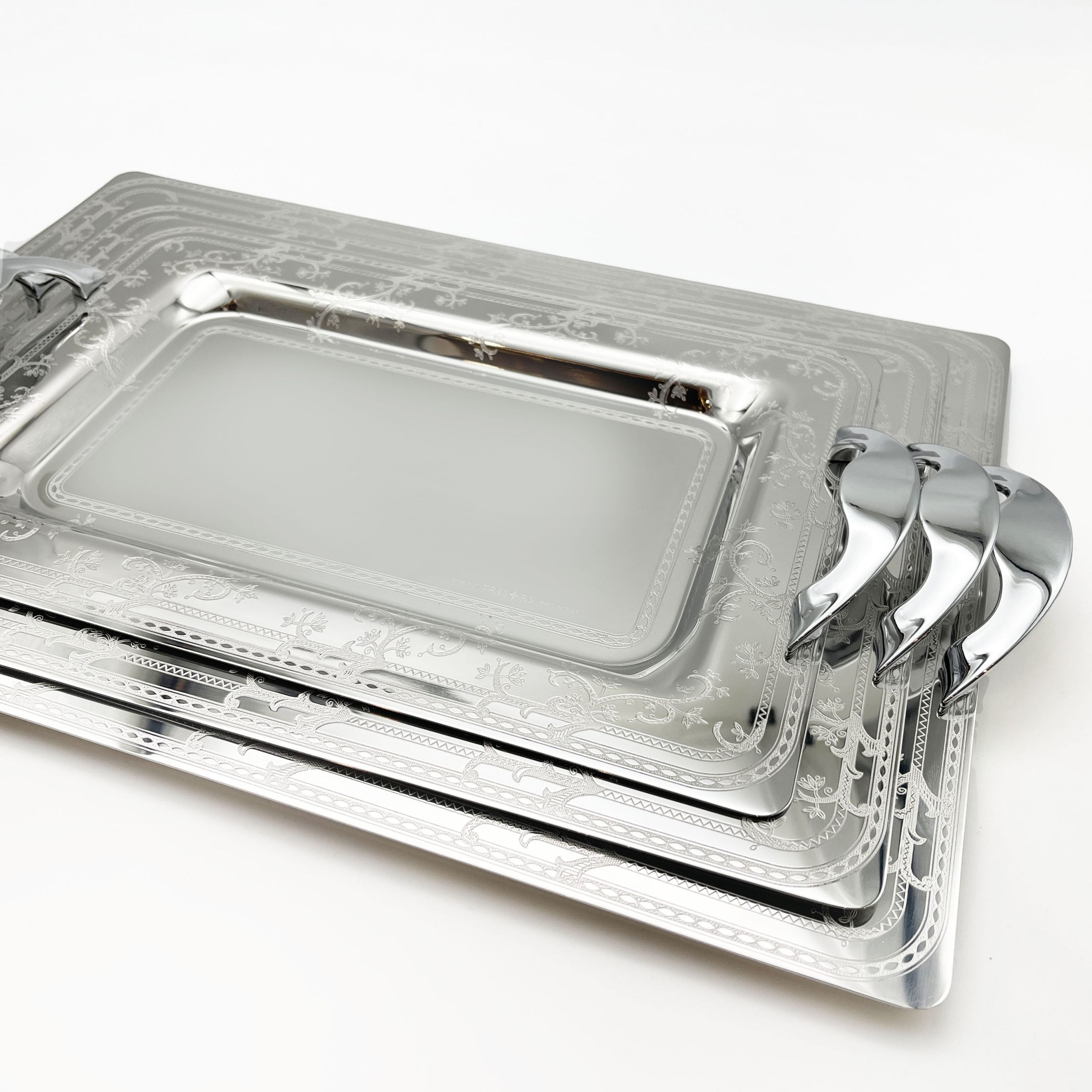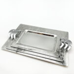 طقم صواني ايطالي 3 قطع مستطيل فضي – Tressors