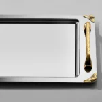 الوصف:طقم صواني بتصميم فاخر بلمسة ذهبية مطفية، مصنوع من خامة استانلس ستيل عالية الجودة (18/10) مقاومة للصدأ.مثالي للتقديم في المناسبات والضيافة اليومية، ويجمع بين المتانة والأناقة العصرية.