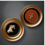 طقم أطباق فاخر من 3 قطع – الأسود الملكي بلمسة ذهبية