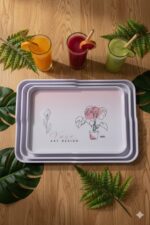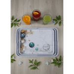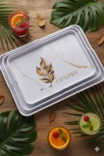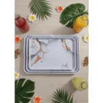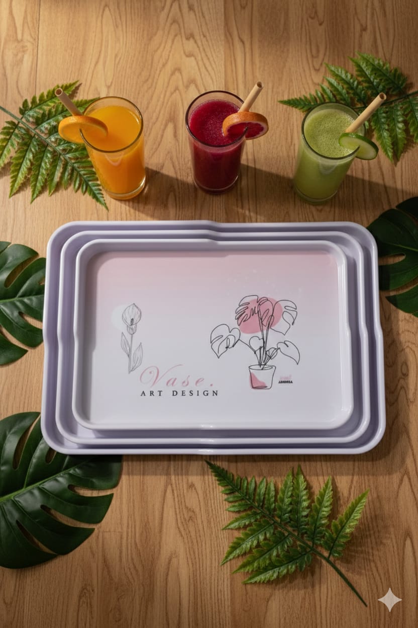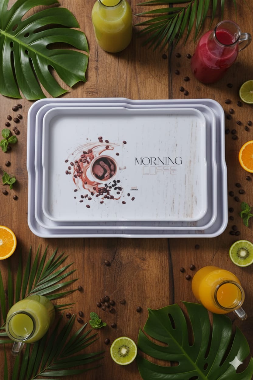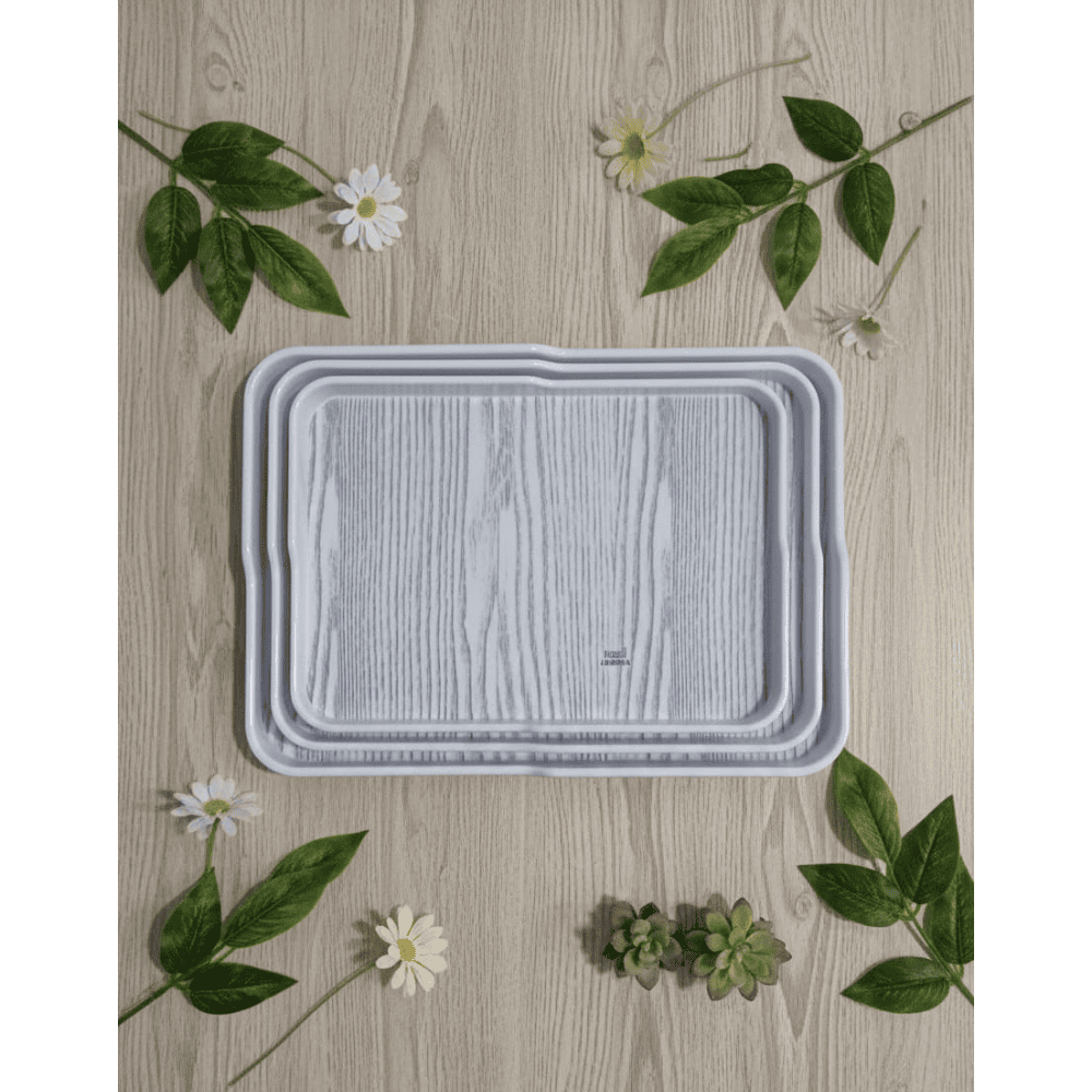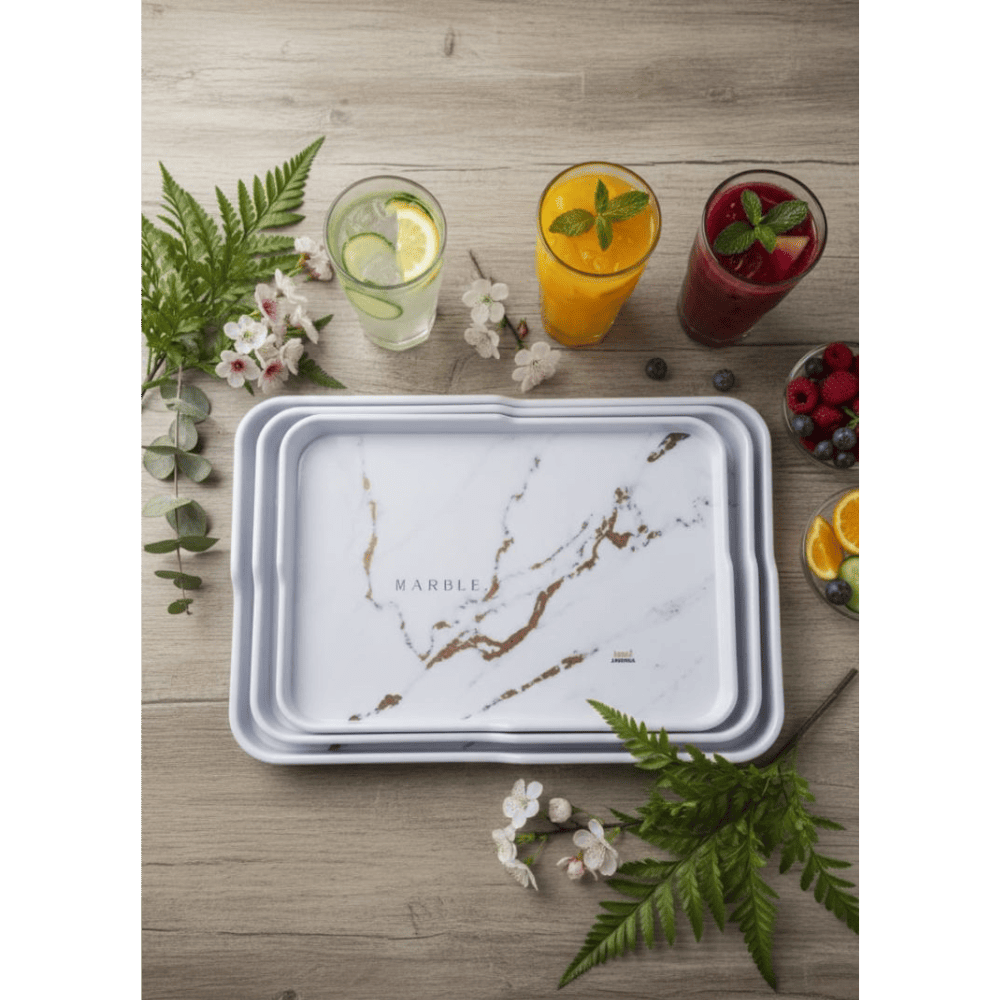 طقم صواني تقديم مستطيلة الشكل مصنوعة من الميلامين . تتميز هذه الصواني بتصميم عصري