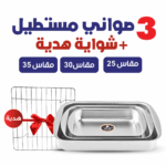 طقم طاجن المونيوم مستطيل 3 قطعة + شواية هدية