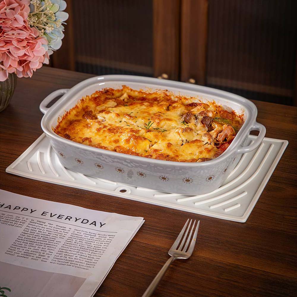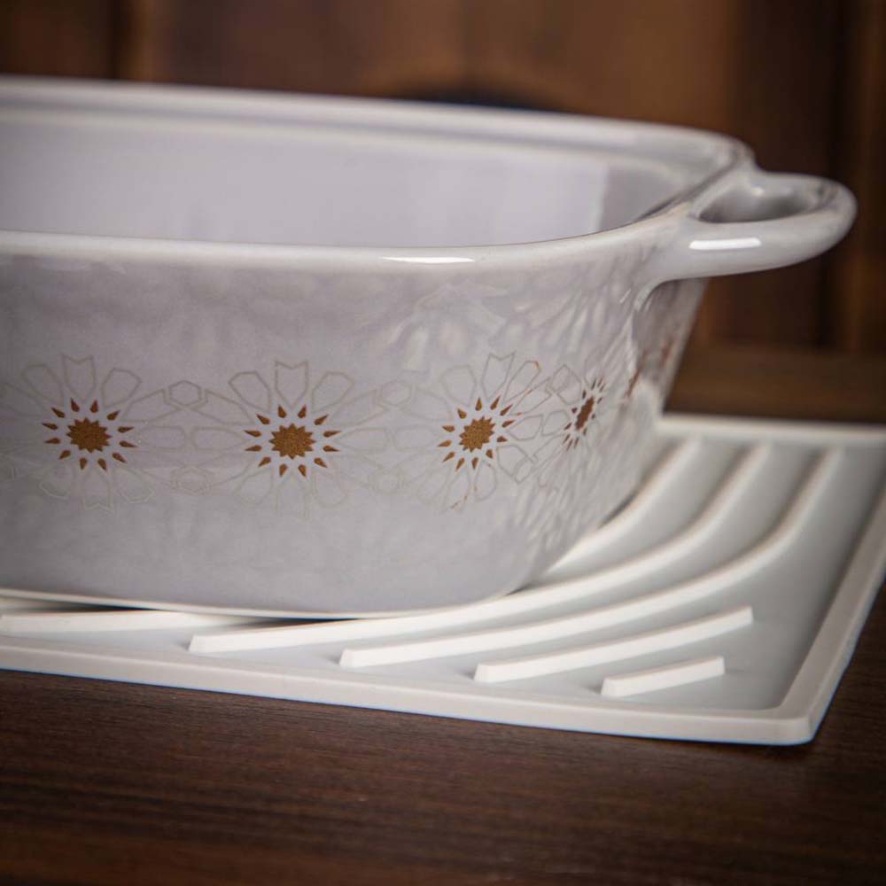 طقم طاجن 2 قطعة + كوستر سليكون حرارى – White*Biege – Andalous Design
