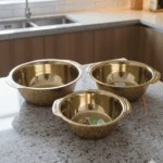 سهولة التخزين: التصميم يسمح بوضع البولات داخل بعضها البعض لتوفير مساحة كبيرة في خزائن المطبخ.