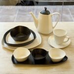 -6 طبق فنجان شاى (3 ابيض ، 3 اسود )