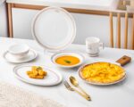 طقم عشاء فاخر باللون الأبيض الكلاسيكي، تصميم أنيق وعصري يضفي لمسة نقاء وفخامة على سفرتك. مصنوع من بورسلين عالي الجودة، مناسب للاستخدام في الميكروويف وآمن في غسالة الأطباق، ليمنحك استخدام يومي عملي ومظهر راقٍ في كل مناسبة.
