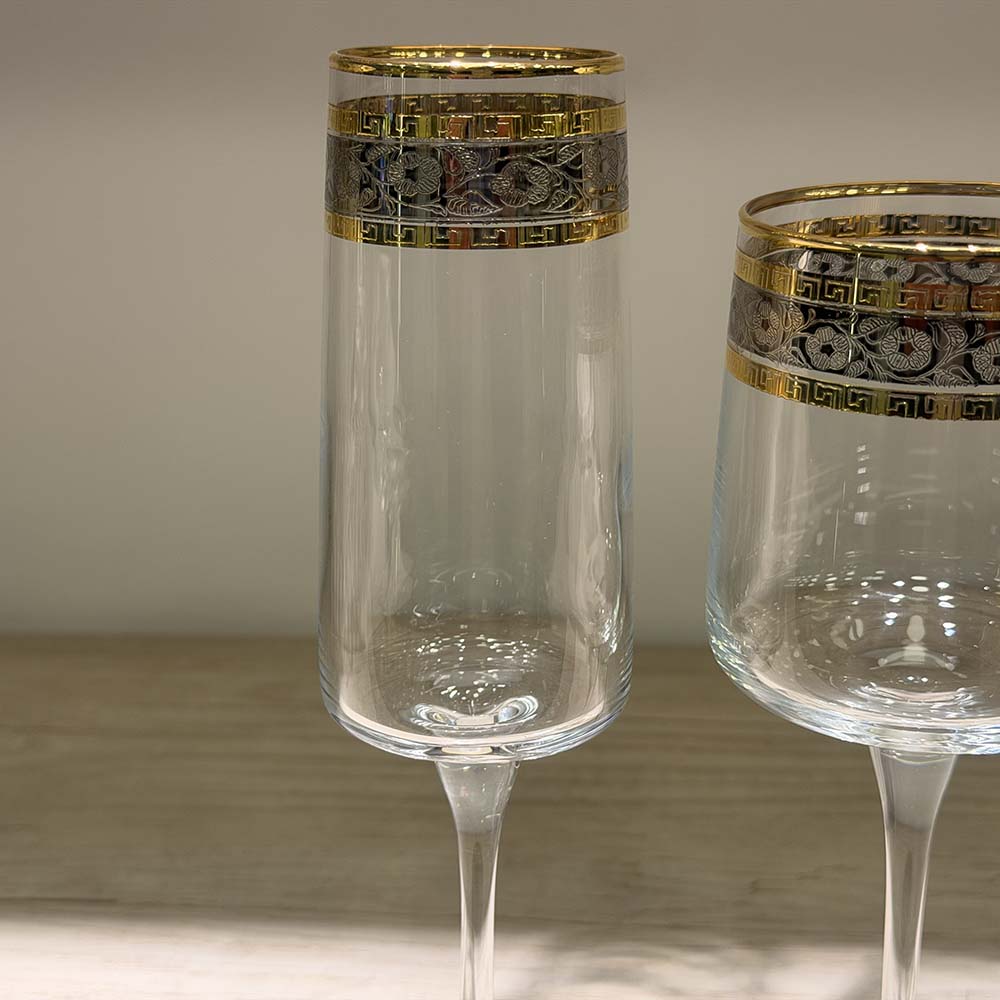 استمتع بأناقة الضيافة مع طقم الفلوت والعصير التركي المكون من 12 قطعة، المصمم بأسلوب راقٍ يجمع بين الفخامة والطابع الكلاسيكي المميز. يتميز الطقم بتصميم أنيق بقاعدة طويلة تمنح لمسة فخمة أثناء التقديم، مما يجعله مثاليًا للعصائر، المشروبات الباردة، والمناسبات الخاصة والاحتفالات.