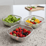 اجعلي تحضير الوجبات أكثر سهولة وأناقة مع طقم المصافي المربع المتكامل. صُمم هذا الطقم ليجمع بين المتانة العالية والشكل العصري، مما يوفر لكِ أداءً مثالياً في تصفية الخضروات، الفواكه، والمعكرونة بكل سلاسة.