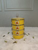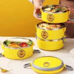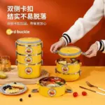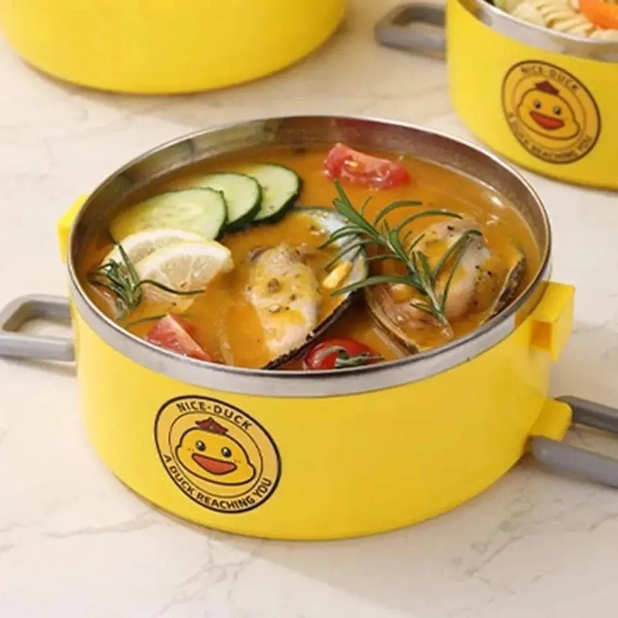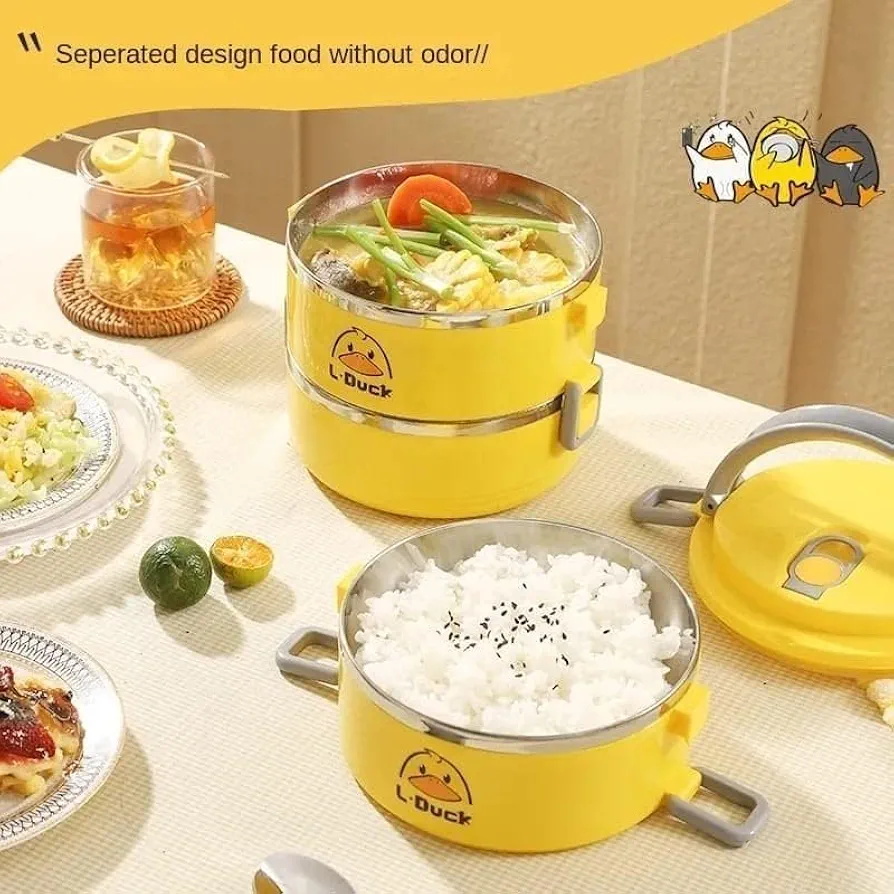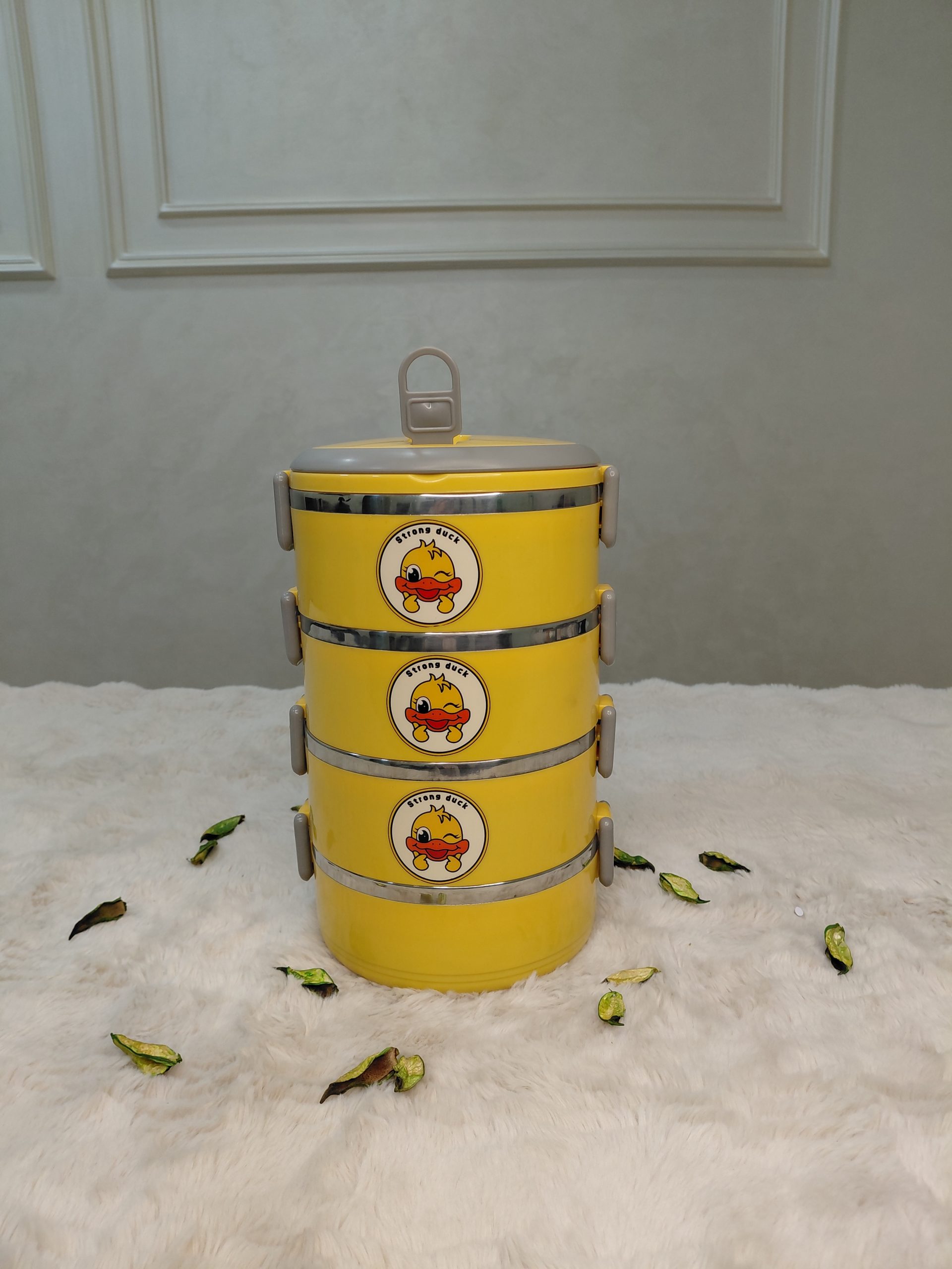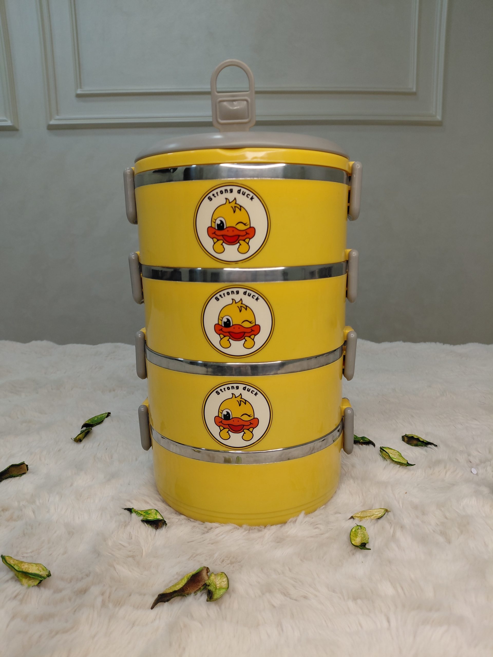 عامود طعام متعدد الطبقات، بتصميم بطة كرتونية على كل طبقة.