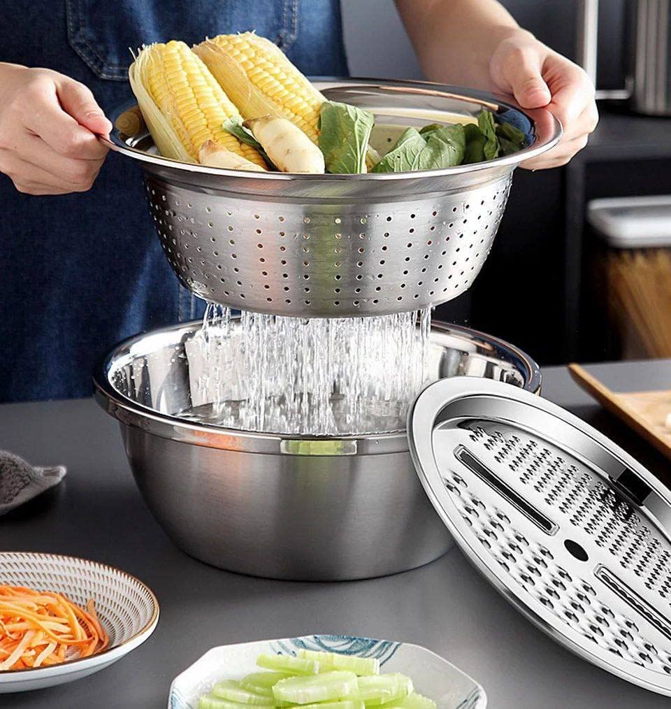 3 في 1: عجان + مصفاة + مبشرة بـ 4 أشكال