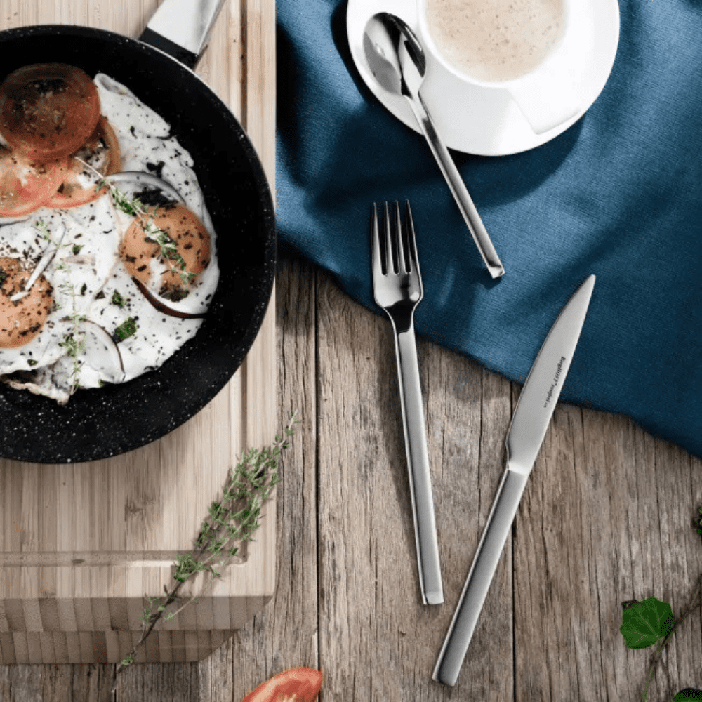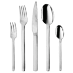 بسيط ولكنه حيوي، يتميز طقم أدوات المائدة Essence بطابع رجولي يلفت الأنظار على مائدة الطعام.صممه المصمم الحائز على جوائز رالف كرامر، حيث ابتكر طقمًا يتميز بالدقة والانسجام، يجمع بين الأسطح المستطيلة والانحناءات الواضحة بطريقة متوازنة.يمزج هذا الطقم بين التصميم الهادئ والدقة التقنية، مما ينتج عنه تناظر جذّاب يمنح أدوات المائدة مظهرًا متناسقًا وأنيقًا.