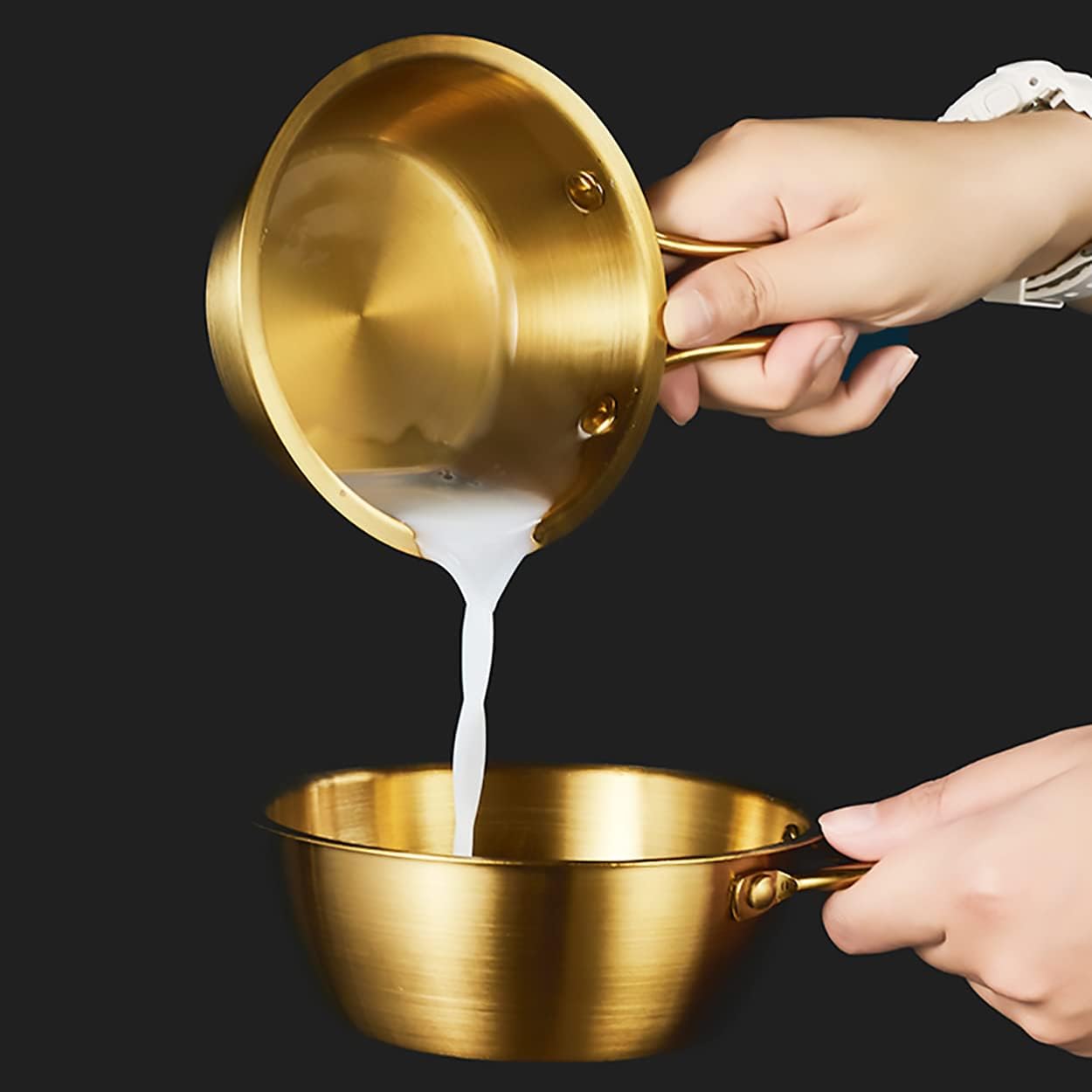 طاسة قلي استانلس ستيل ذهبية بمقبضين