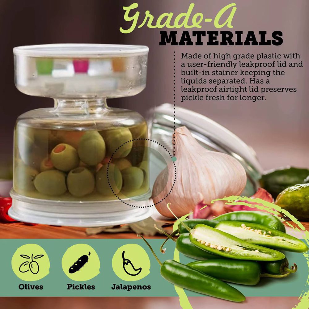 مصنوعة من خامات بلاستيك عالية الجودة وآمنة للاستخدام الغذائي، وسهلة الفك والتنظيف، ويمكن استخدامها أيضًا لتخزين أطعمة أخرى غير المخللات.