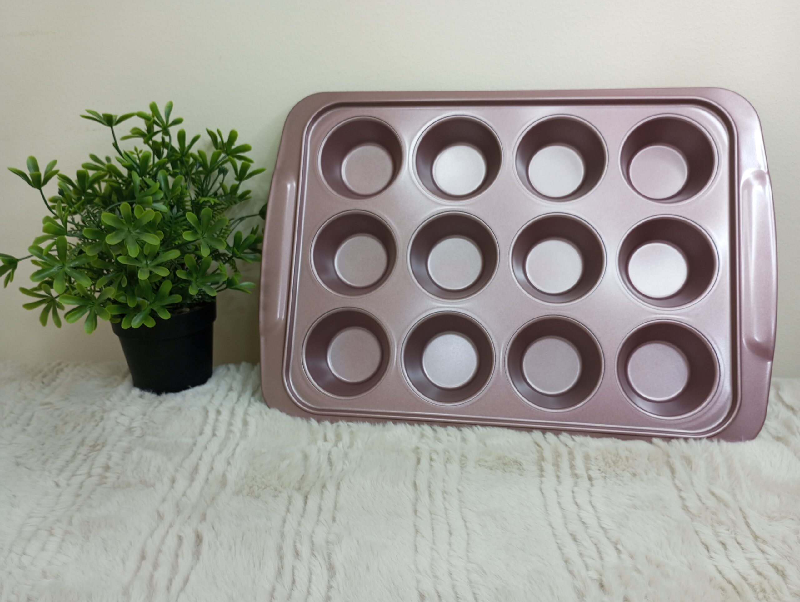 صينية متعددة الاستخدامات: صينية مافن غير لاصقة بسعة ١٢ كوبًا، مثالية لخبز المافن، والكب كيك، والبودينغ، وغيرها من الحلويات.