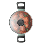 يأتي القدر بغطاء زجاجي مزود بفتحة تهوية وحافة من الستانلس ستيل، مما يتيح لك مراقبة الطعام أثناء الطهي دون الحاجة إلى رفع الغطاء.