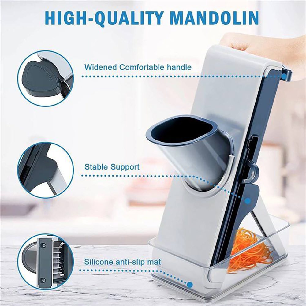 قطّاعة خضروات يدوية متعددة الاستخدامات مصممة لتوفير تقطيع سريع، متساوٍ وآمن للخضروات والفواكه. تأتي مع شفرات مختلفة قابلة للتبديل تتيح لك تقطيع المكونات بأشكال متعددة مثل الشرائح الرفيعة، الشرائح السميكة، وأعواد الجوليان.