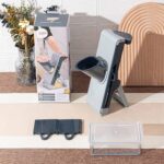 القطّاعة مزودة بحامل ثابت وقاعدة مانعة للانزلاق لثبات أعلى أثناء الاستخدام، مع تصميم مائل يسهل عملية التقطيع ويقلل المجهود. كما تحتوي على وعاء سفلي لتجميع الخضروات مباشرة والحفاظ على نظافة المطبخ.