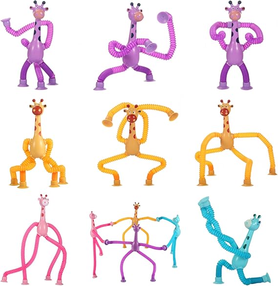 ألعاب أكواب شفط لأنابيب بوب المرحة: تساعد على تطوير المهارات الحركية الدقيقة والتنسيق بين اليد والعين وقدرات حل المشكلات. تأتي أنابيب الزرافة بألوان مرحة ونابضة بالحياة ويمكن توصيلها وفصلها بطرق مختلفة، مما يسمح للأطفال باستخدام خيالهم لصنع جميع أنواع الأشياء معهم.