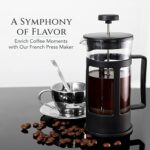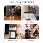 طريقة تحضير القهوة الفرنسية: تسمح طريقة التخمير الفرنسية الخاصة بنا بأقصى قدر من استخراج النكهات من أوراق الشاي والقهوة المطحونة، مما يؤدي إلى طعم أكثر ثراءً وامتلاءً مقارنة بطرق التخمير الأخرى.