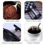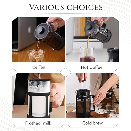 الاستخدام: الحجم الصغير والمواد المتينة للمكبس الفرنسي يجعلها خيارًا رائعًا للسفر أو التخييم أو أي موقف تريد فيه الاستمتاع بالشاي أو القهوة عالية الجودة أثناء التنقل.