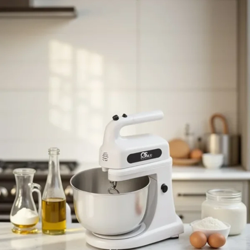 ملحقات متعددة: يأتي مع ملحقات متنوعة تشمل شفرات خلط وعجن، مما يتيح لك تحضير مجموعة متنوعة من الأطباق، من الكعك إلى العجائن.