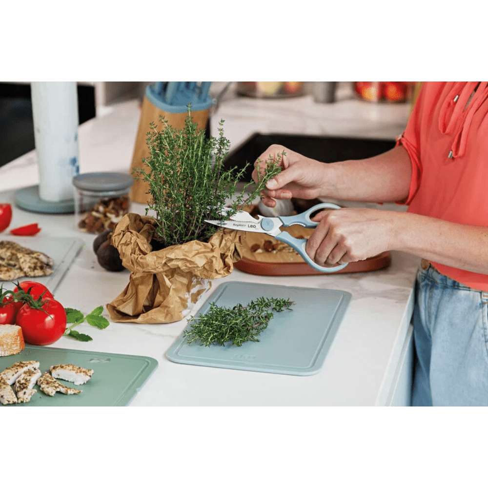 تصميم متوافق مع حامل السكاكين LEO: يحتوي على مغناطيس مدمج يتيح تثبيت المقص بسهولة على جانب الحامل أو أي سطح مغناطيسي