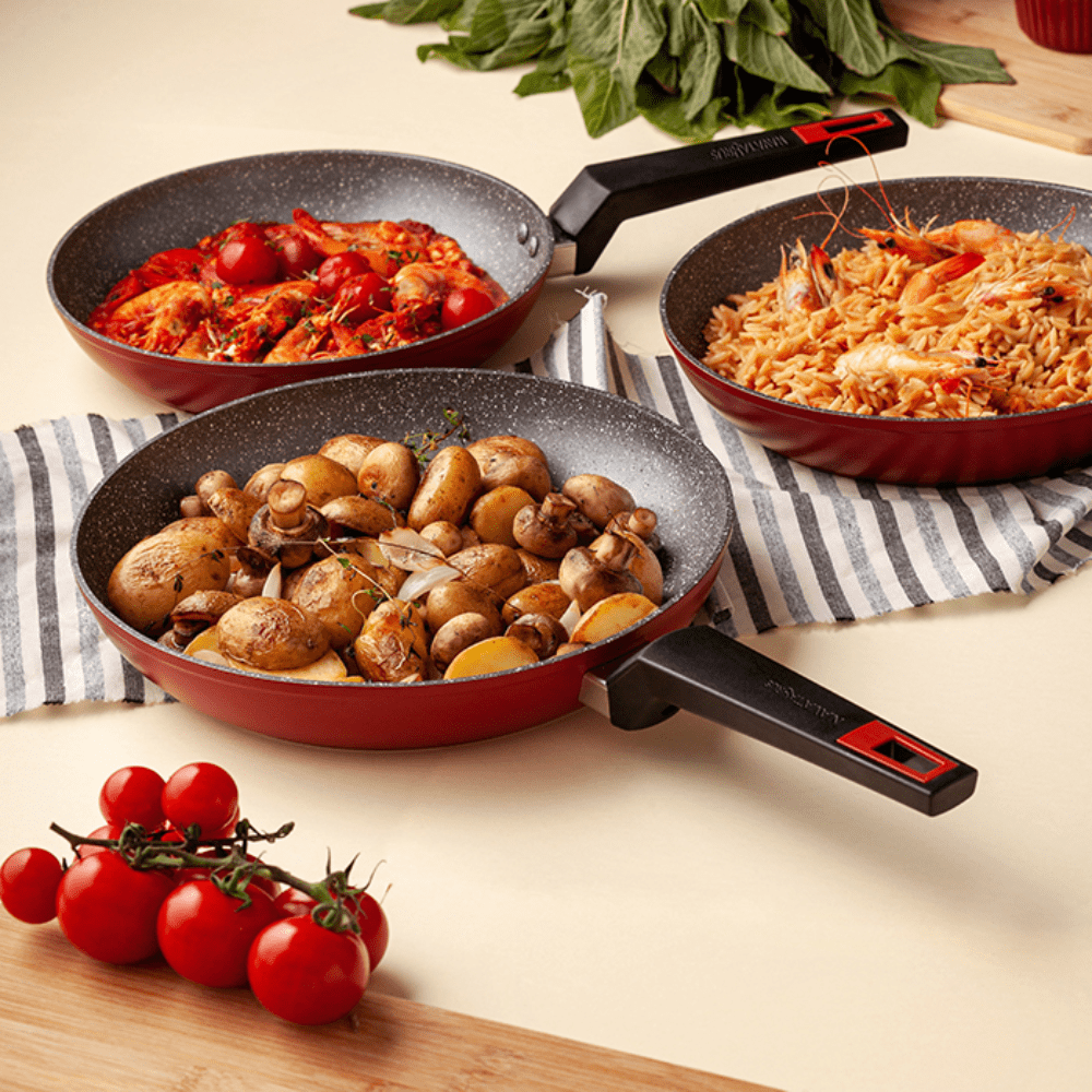 طقم أواني طهي TAURUS عالي الجودة من الألمنيوم مع 5 طبقات من طلاء الحجر غير اللاصق