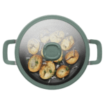 المقبض الناعم والغطاء الزجاجي الشفاف المزود بفتحة تصريف ومسند ملعقة يجعلان تجربة الطهي أكثر راحة وتنظيمًا، ما يجعلها قطعة عملية في مطبخك اليومي.