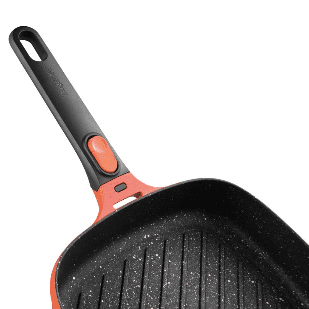 مقلاة شواء مربعة بمقبض قابل للفصل – أحمر 28 سم – شواء مثالي وراحة أكبر
