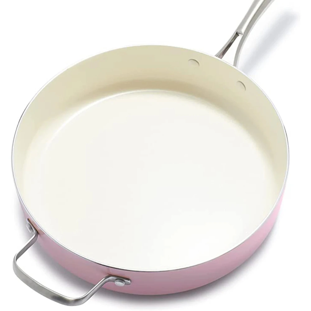 مقلاة مغطاة بيدين جانبيتين بلون البينك – green pan