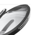 غطاء زجاجي شفاف مع حافة سيليكون يثبت بشكل عمودي على جسم المقلاة