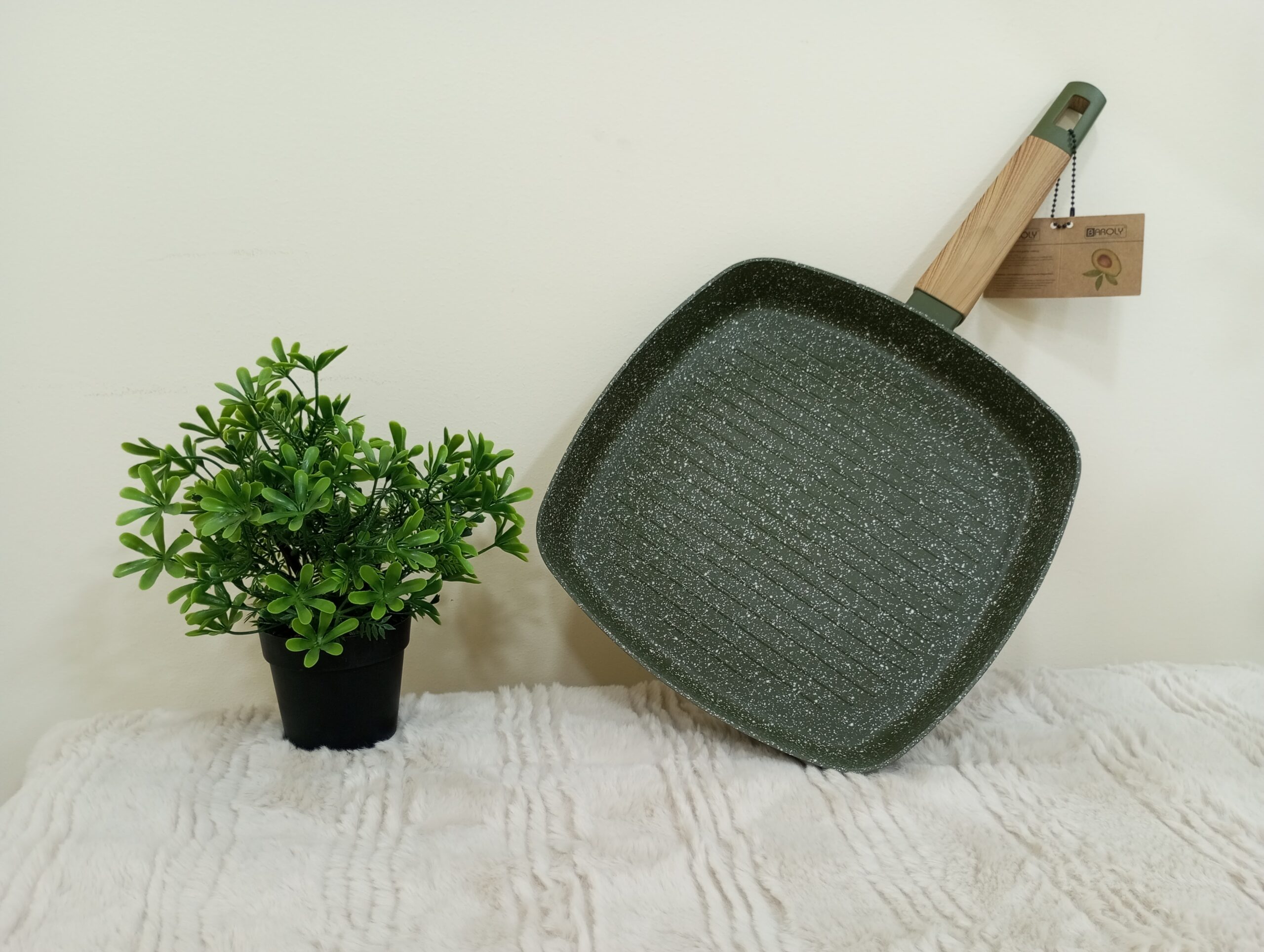 مقلاية جريل جرانيت مربع 28 سم * 28 سم بيد خشبي BAROLY