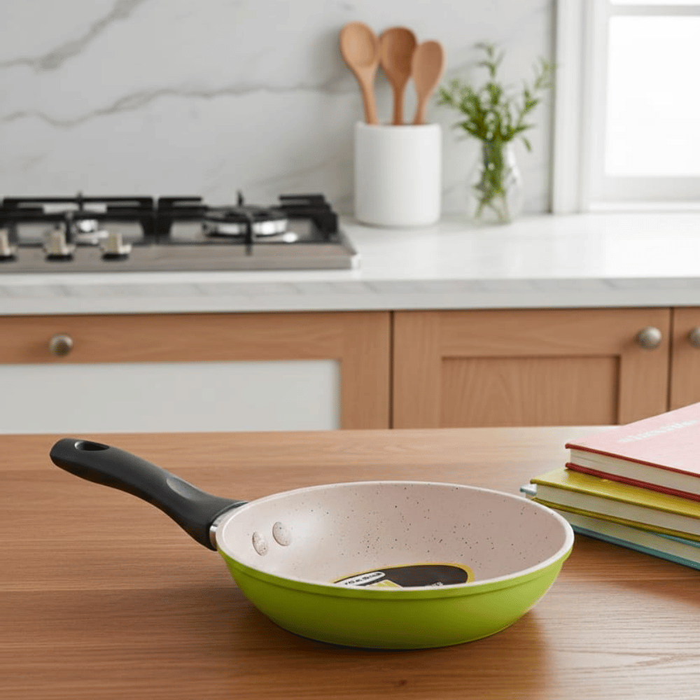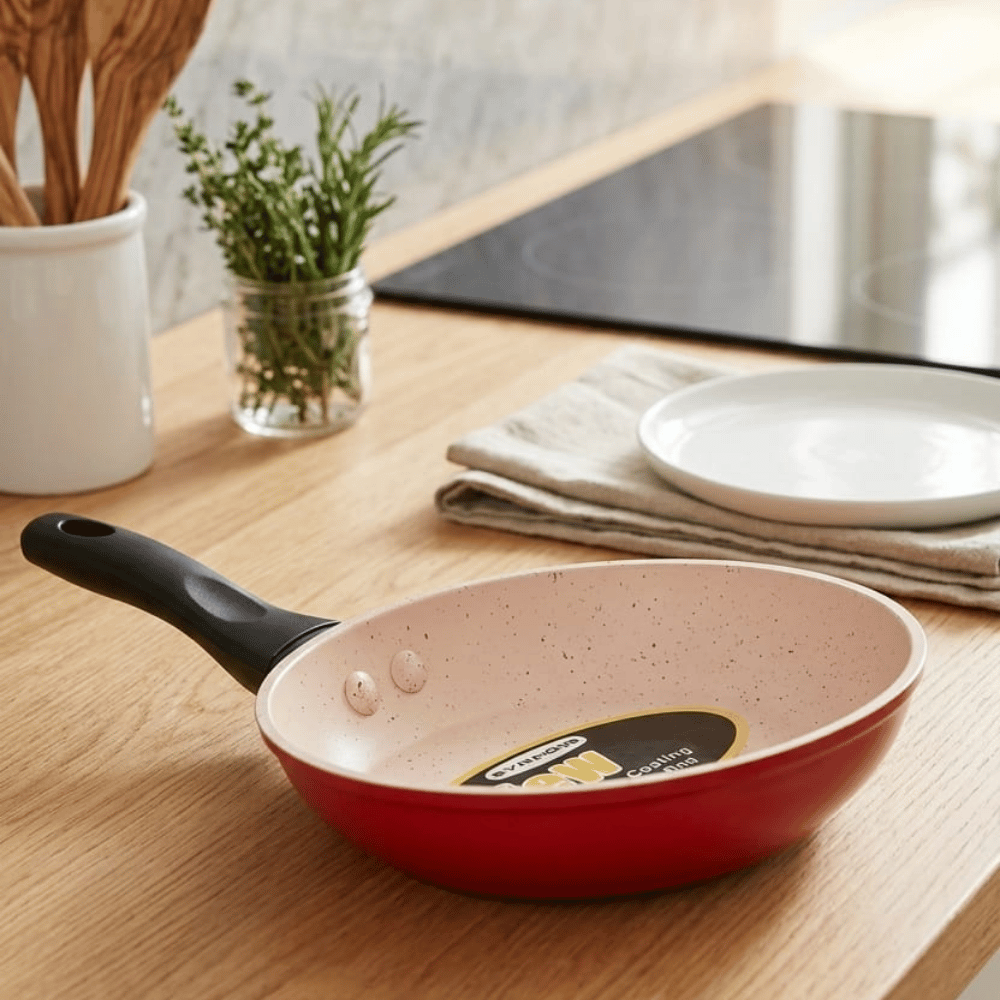 تصميم عصري وجذاب: تأتي المقلاة بتصميم مميز مع ألوان مبهجة تناسب كافة أذواق المطابخ الحديثة.