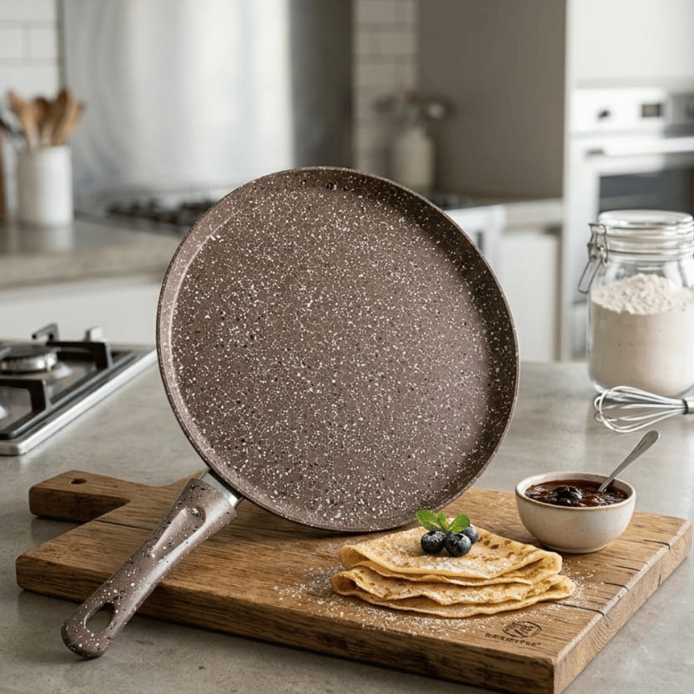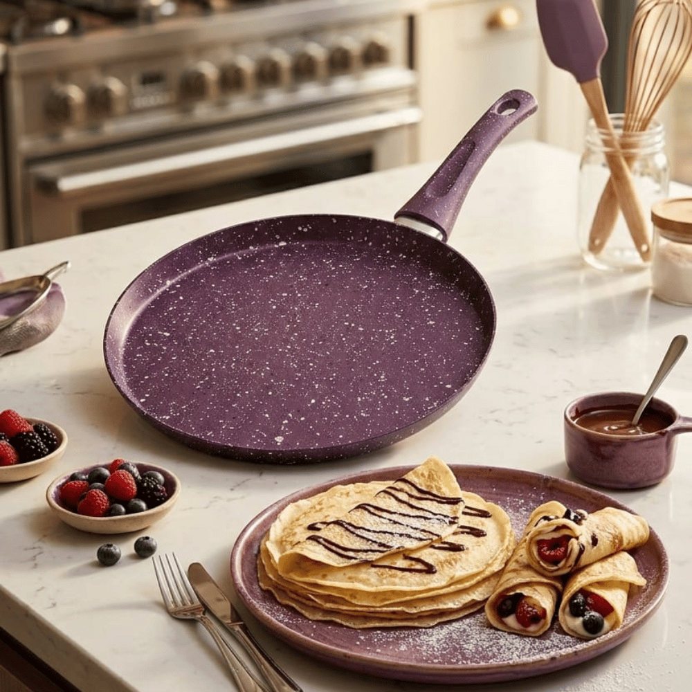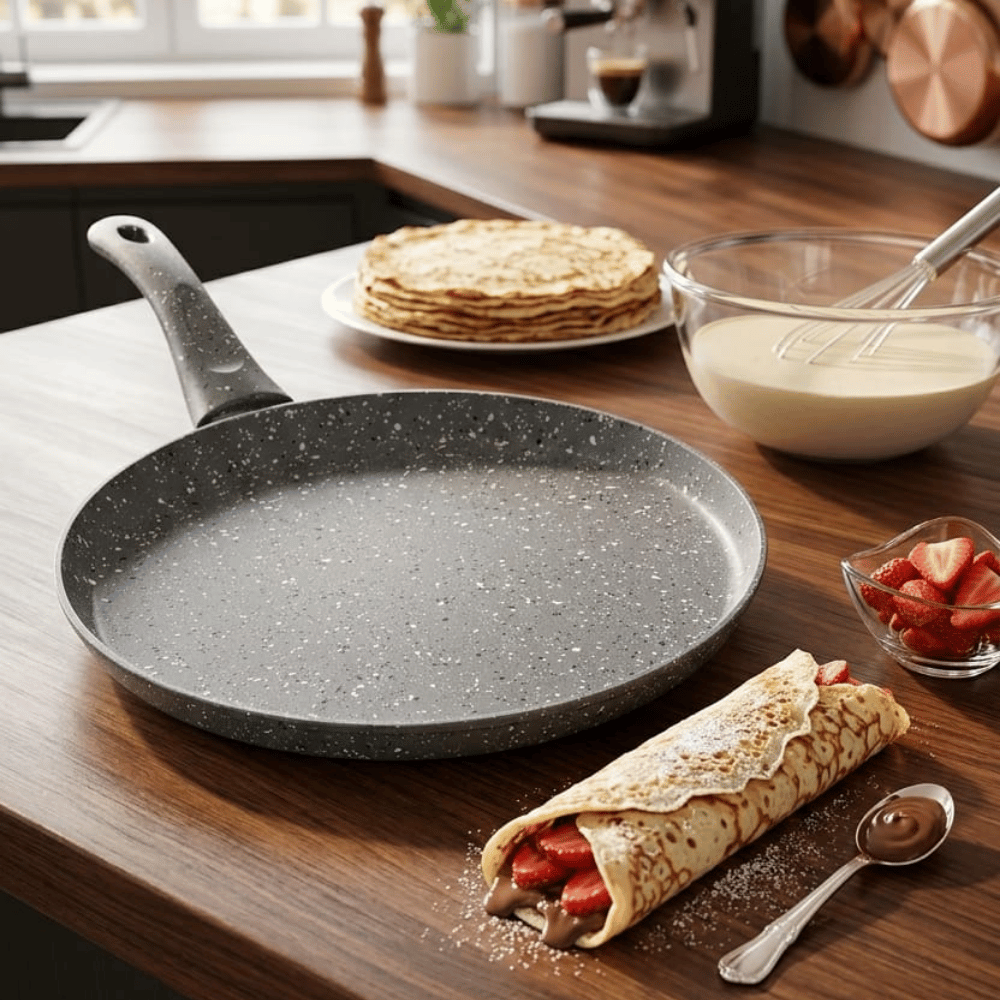 أضيفي لمسة من الأناقة والاحترافية لمطبخك مع طاسة الكريب المصممة خصيصاً لنتائج مثالية في كل مرة. تتميز بتصميم عصري وأداء عملي يجعل من تحضير الفطور والحلويات متعة يومية.