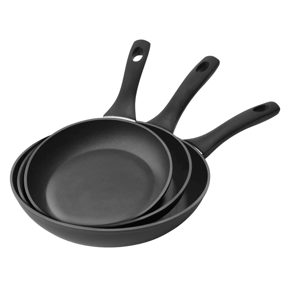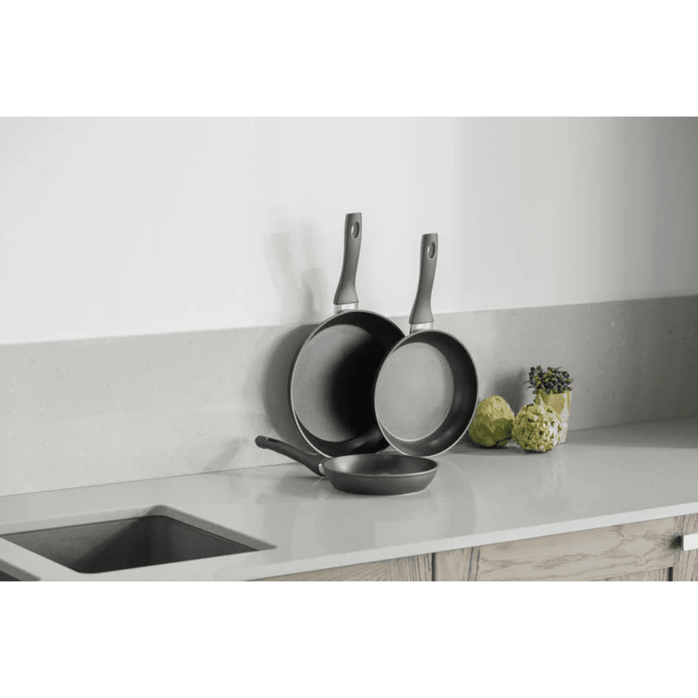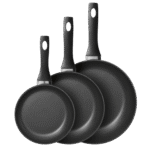 طقم مميز من ثلاث مقالي بأحجام 20 سم، 24 سم، و28 سم لتناسب جميع احتياجات الطهي.