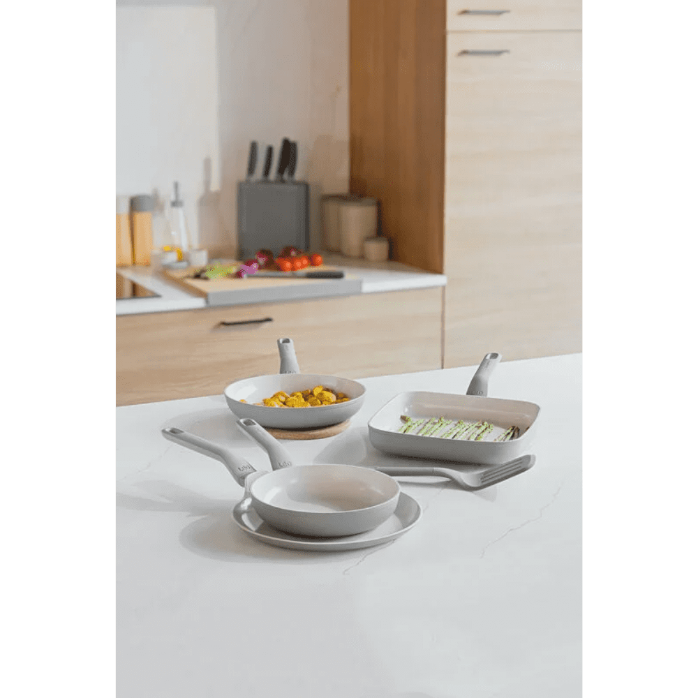 مجموعة 4 مقالي + ملعقة تقليب نايلون | Balance Moonmist من Berghoff(أقطار: 20 سم، 24 سم، 24 سم شواء، 26 سم بان كيك)